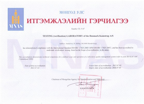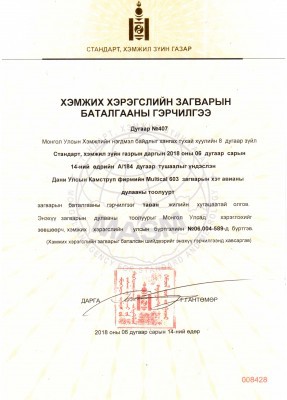 Дани улсын Камструп фирмийн Мультикал загварын хэт авианы дулааны тоолуурын анхдагч баталгаажуулалтын үр дүнг Стандарт Хэмжил Зүйн Газрын Даргын А/185 тоот тушаалаар зөвшөөрлөө.